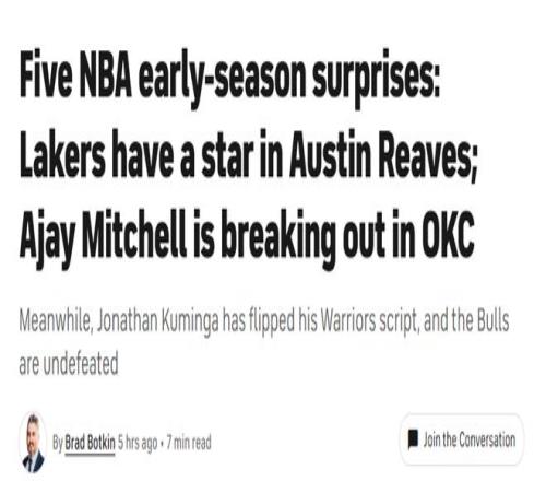 北京时间10月29日,知名美媒CBS评出了新赛季开局的5大惊喜,具体如下——